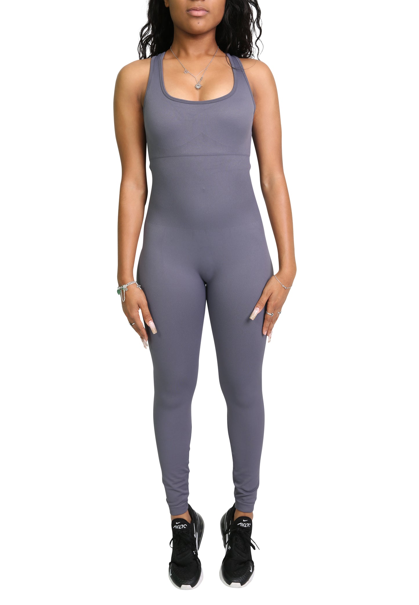 The Wallace Athletics Ultra Comfortable Maddie Bodysuit is crafted from soft, ribbed fabric with 4-way stretch to provide maximum flexibility, compression, and support. The yoga bodysuit material lifts the butt, contours your curves, and reduces muscle vibrations, making it perfect for yoga, gym workouts, or active lifestyle wear.